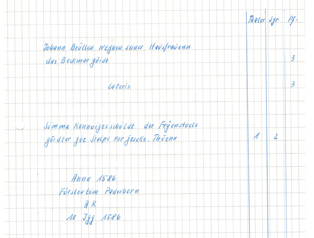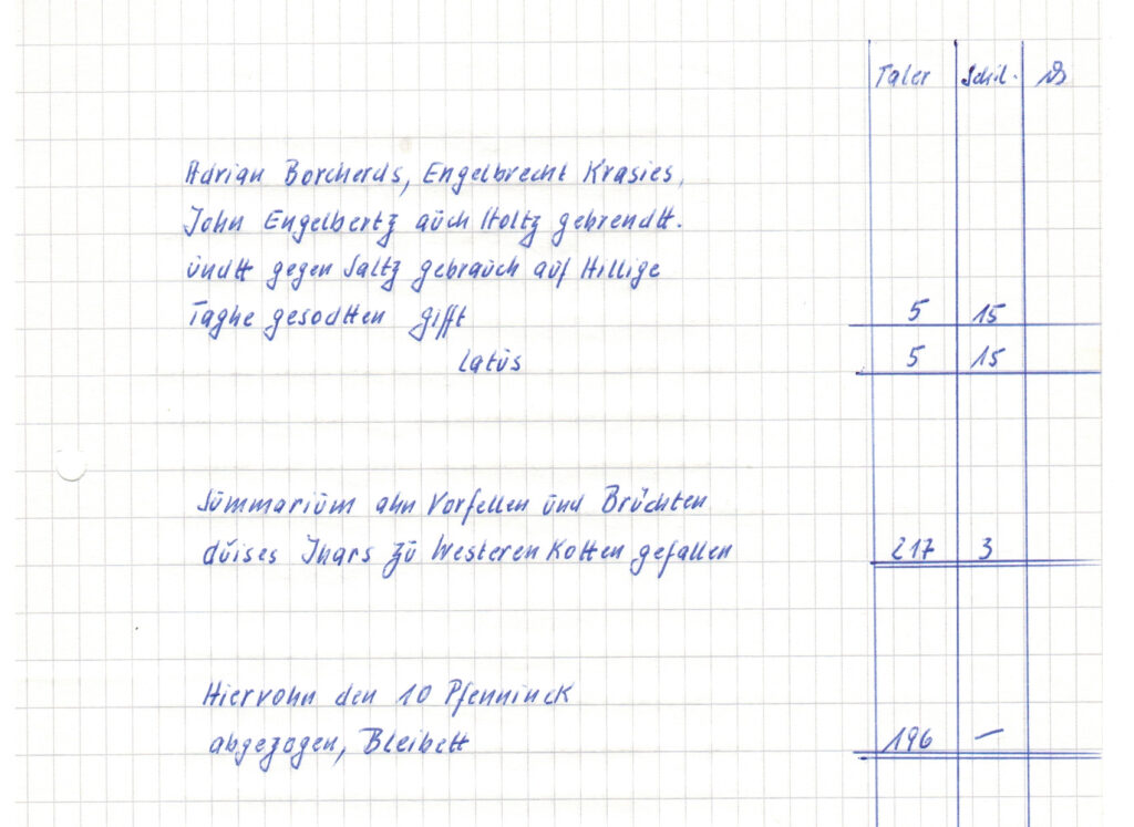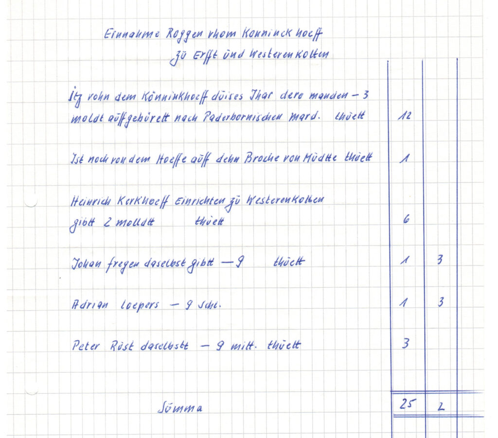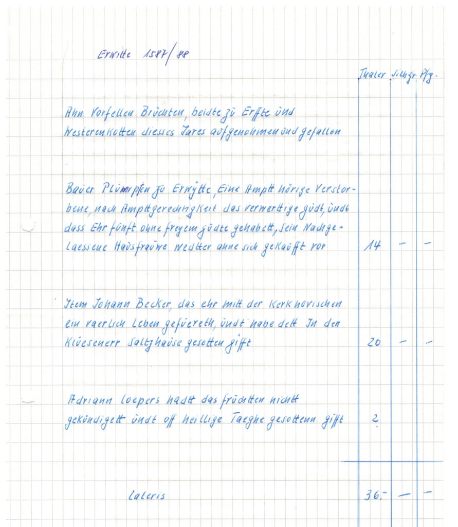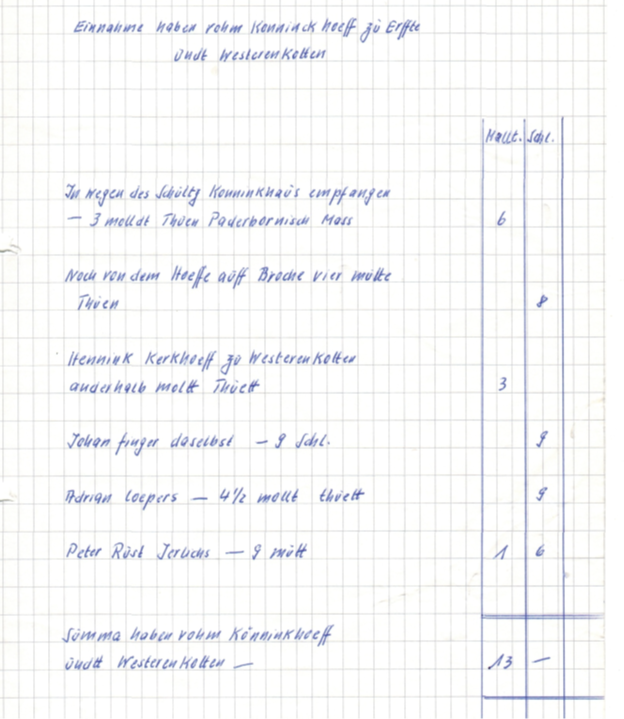 | Erwitte 1587/88: An Vorfällen, Brüchten[4] beide zu Erwitte und Westernkotten dieses Jahres aufgenommen und gefallen | |||