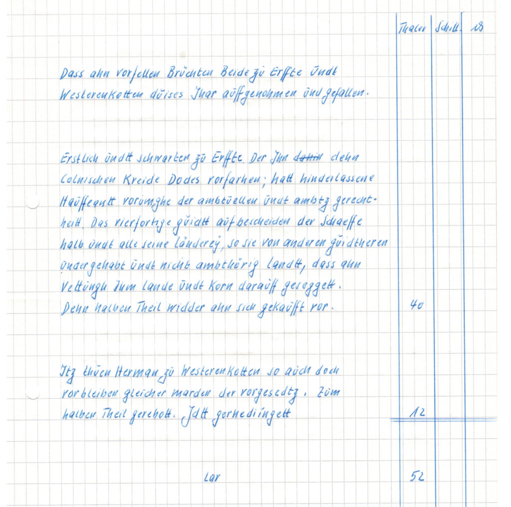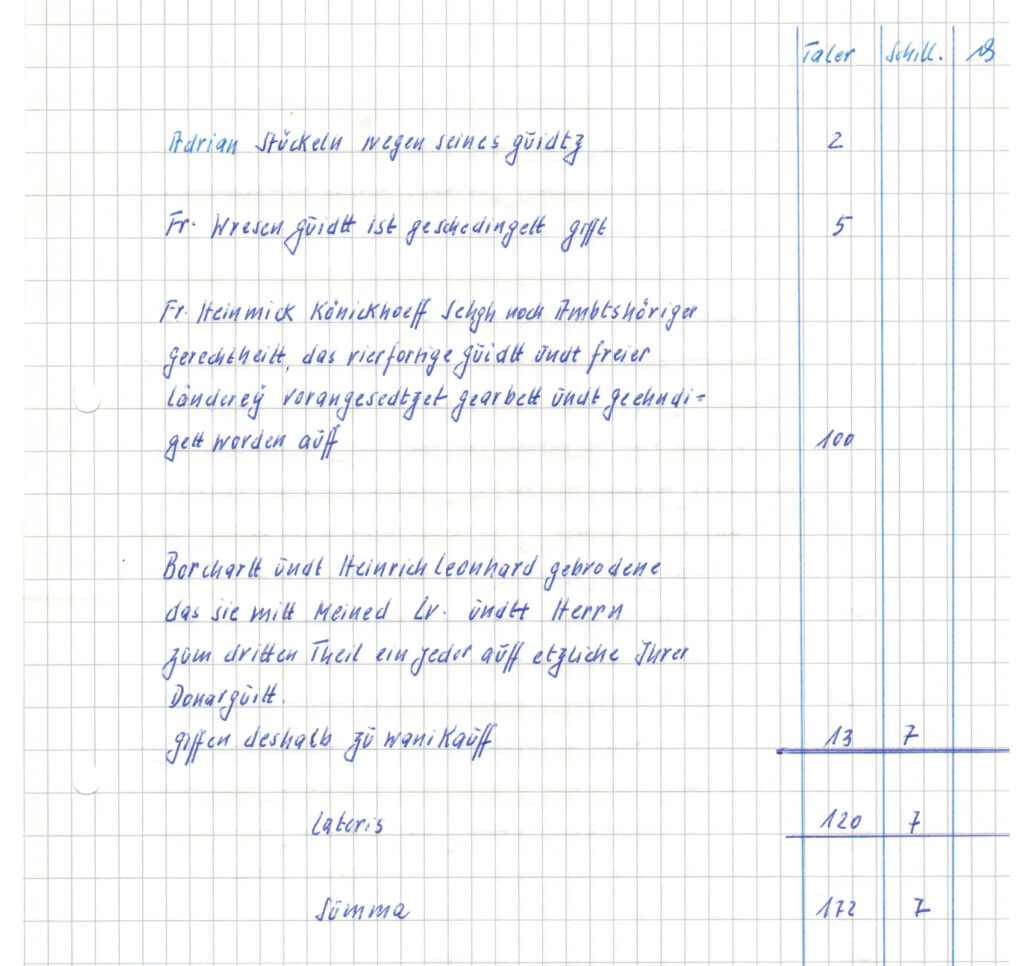 | Bauer Plümpe zu Erwitte, eine amtshörige Verstorbene, nach Amtsgerechtigkeit das verwerfliche Gut und das Ehr fünft ohne freies Gut gehabt, seine nachgelassene Hausfrau, welche an sich gekauft haben… | |||