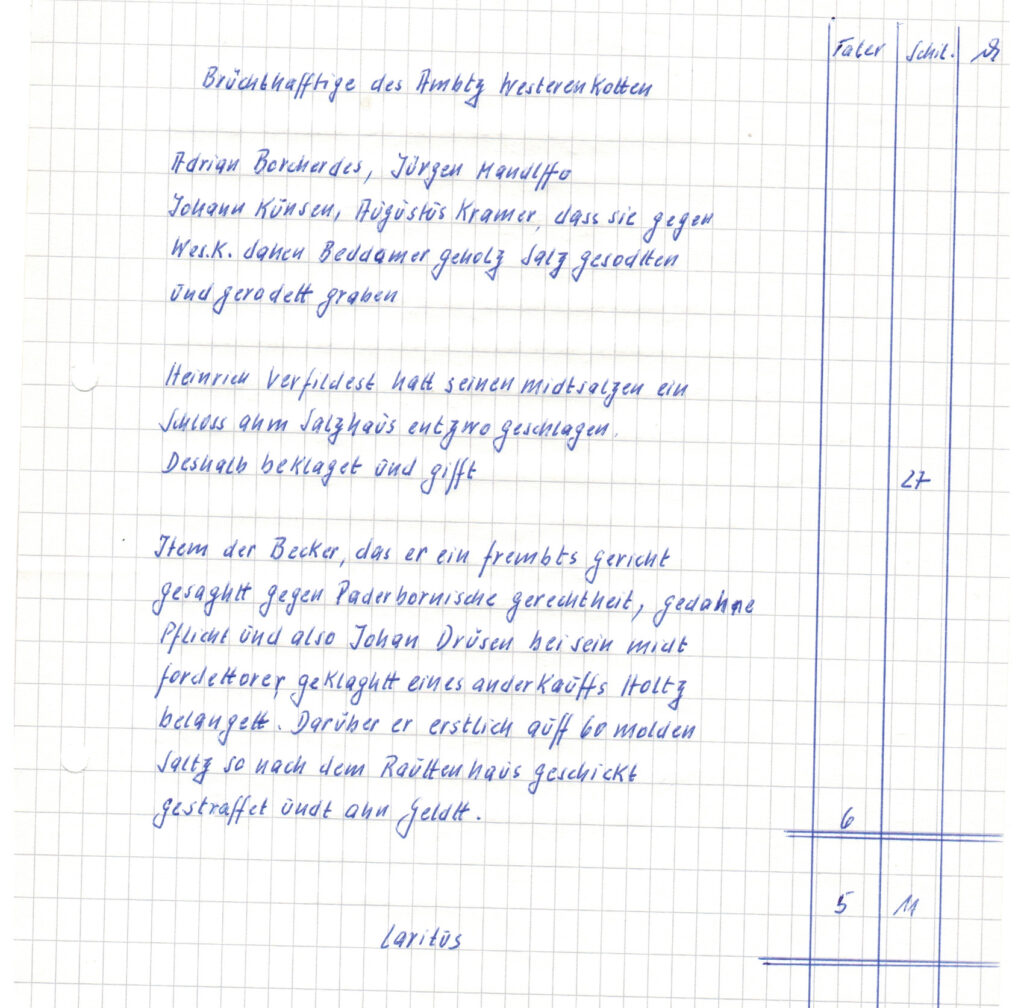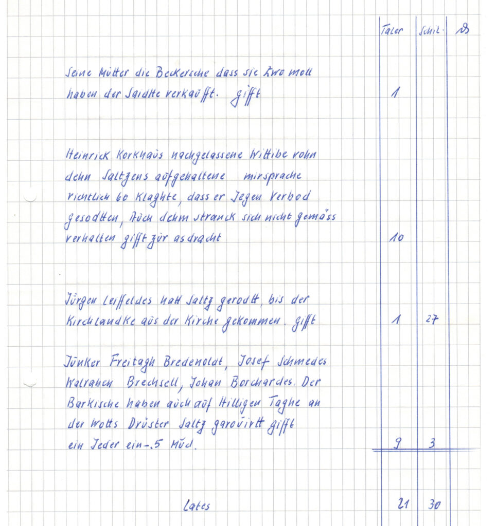 | Item Johann Becker, dass er mit der Kerkhoffschen ein auskömmliches Leben geführt, und haben das in dem Klüsener Salzhause gesotten gibt… | |||