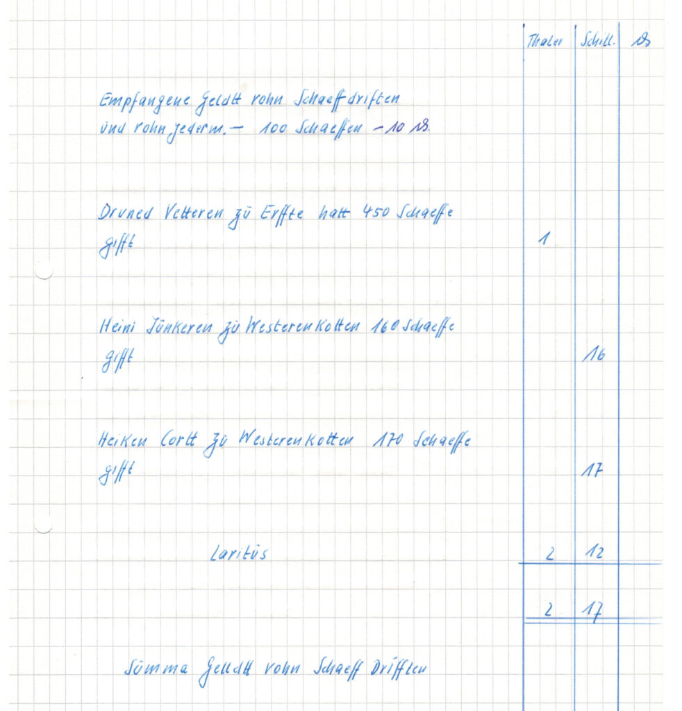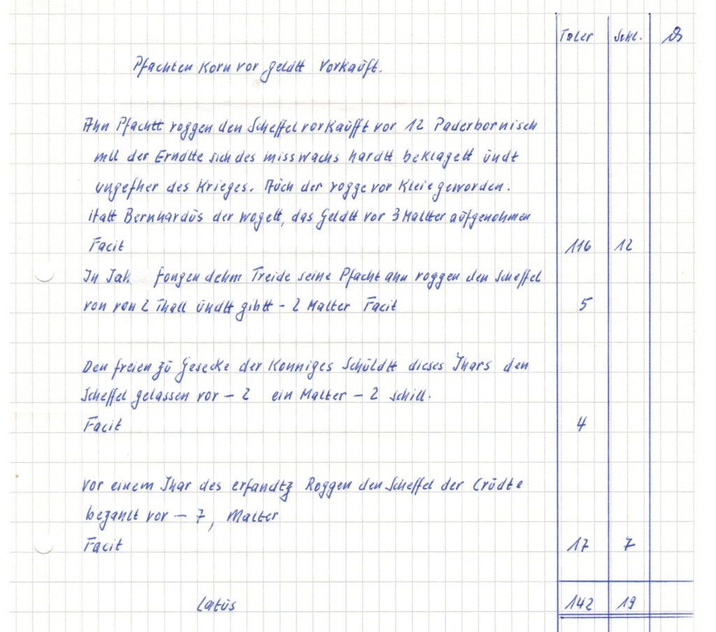 Es folgt die von Schöneweiß transkribierten ersten drei Seiten (ohne Summenangaben), dann alle 30 Seiten als Scans.[3]