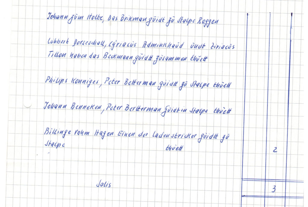 | Johann Engelbert, Johann Borchert, Jobst Schmedker gegen den alten Gebrauch gesotten… | |||