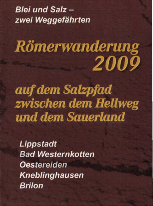 Aus diesem Grund sind die Heimatfreunde Bad Westernkotten zusammen mit anderen befreundeten Heimatvereinen sowie Herrn Horst Braukmann im Frühsommer 2009 diese alten Bleiwege nachgegangen und haben dabei viel Wissenswertes über die römerzeitlichen Handelsbeziehungen erfahren. Das Motto lautete: Gehen. Sehen. Verstehen.