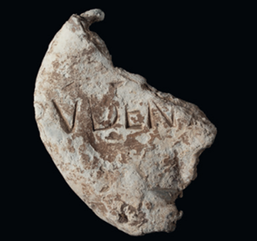 Abb. 10: Pudens-Inschrift auf einem Bleiobjekt aus Brilon-Altenbüren, M 1:1 (Foto: LWL-Archäologie für Westfalen/S. Brentführer)