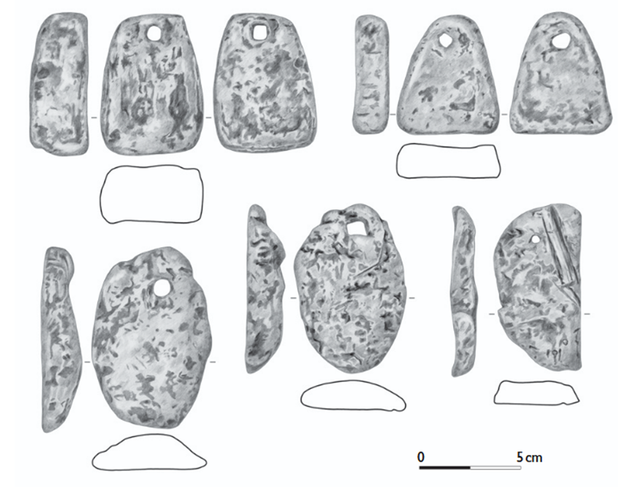 Abb. 11: Auswahl gelochter Bleiobjekte aus Brilon-Altenbüren (Grafik: LWL-Archäologie für Westfalen/A. Müller).