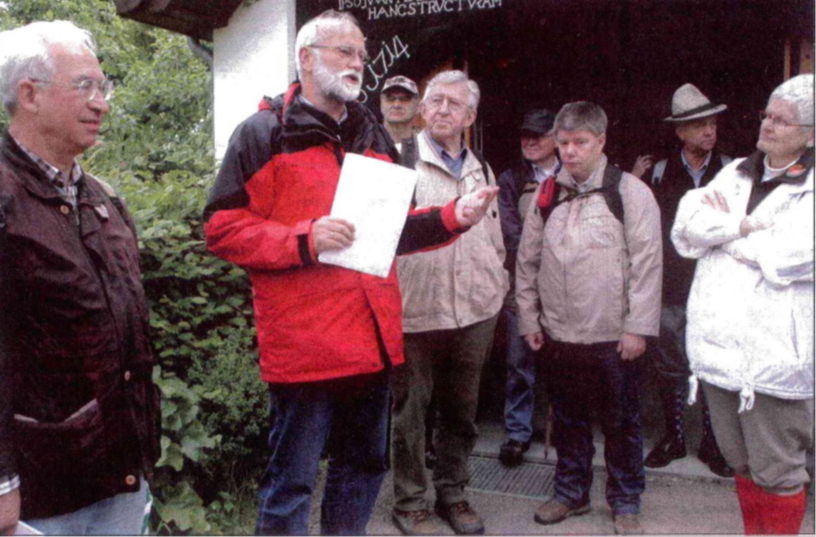 Abb. 1: Auf Einladung der Heimatfreunde aus Brilon, Rüthen, Lippstadt und Bad Westernkotten haben sich am Samstag, 06.06., rund 60 Teilnehmer auf den 2000 Jahre alten Salz-Pfad begeben. Die zehn Kilometer lange Etappe der „Römerwanderung“ startete an der Schäferkämper Wassermühle in Bad Westernkotten. Von dort aus ging es durch das Pöppelschetal nach Oestereiden. Altwegeforscher Horst Braukmann aus Soest (links) erinnerte im Vorfeld an die historischen Handelsbeziehungen zwischen dem Hellwegraum und Brilon. Salz und Blei waren damals die Handelsgüter. Ortsvorsteher Wolfgang Marcus (2. v. I.) gab einen interessanten Einblick in die Geschichte von Bad Westernkotten und das Sälzer-Handwerk. Das angepeilte Ziel Oestereiden erreichte die Wandergruppe am frühen Nachmittag. [Foto und Text: Rosenthal, Der Patriot]